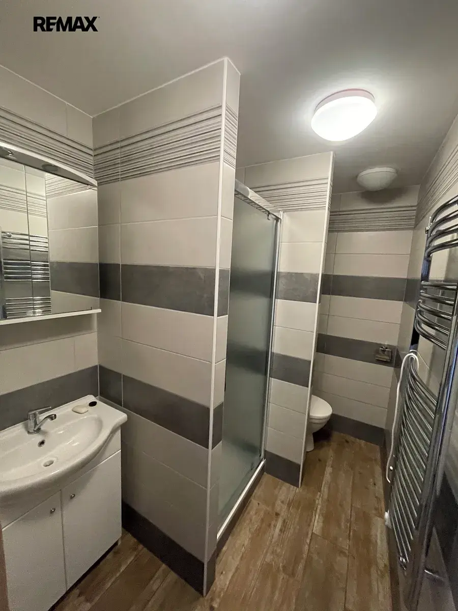 Dispozice bytu: obývací pokoj, kuchyň s jídelnou, vstupní chodba, koupelna se sprchou + WC.
