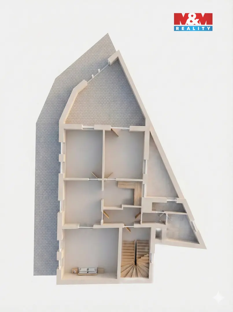 Velkou výhodou je prostorná terasa o rozloze 38 m² s výhledem na kulturní dům a okolí.