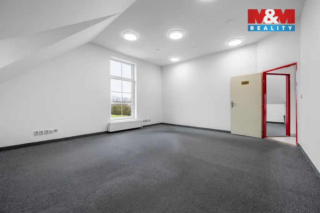 Nabízíme k pronájmu samostatnou kancelář o užitné ploše 28 m², situovanou ve 2. nadzemním podlaží zděné budovy na okraji obce u Domažlic. Prostor je v dobrém stavu, částečně zařízený (kuchyňská linka), k dispozici 2× WC. Vytápění zajišťuje elektrický kotel s rozvodem do radiátorů. Parkovat je možno na ulici. Lokalita nabízí klidné pracovní prostředí s dobrou dostupností služeb (pošta, škola, lékař, obchody). Ideální prostor pro menší firmu, kancelář či služby. Měsíční zálohy na energie jsou 700 Kč. Při podpisu nájemní smlouvy bude uhrazeno nájemné ve výši 3 400Kč, kauce ve výši dvou nájmů 6 800 Kč a provize RK ve výši 4 114 Kč. Celkové náklady tedy činní 14 314 Kč. Pro více informací doporučujeme prohlídku s makléřem.