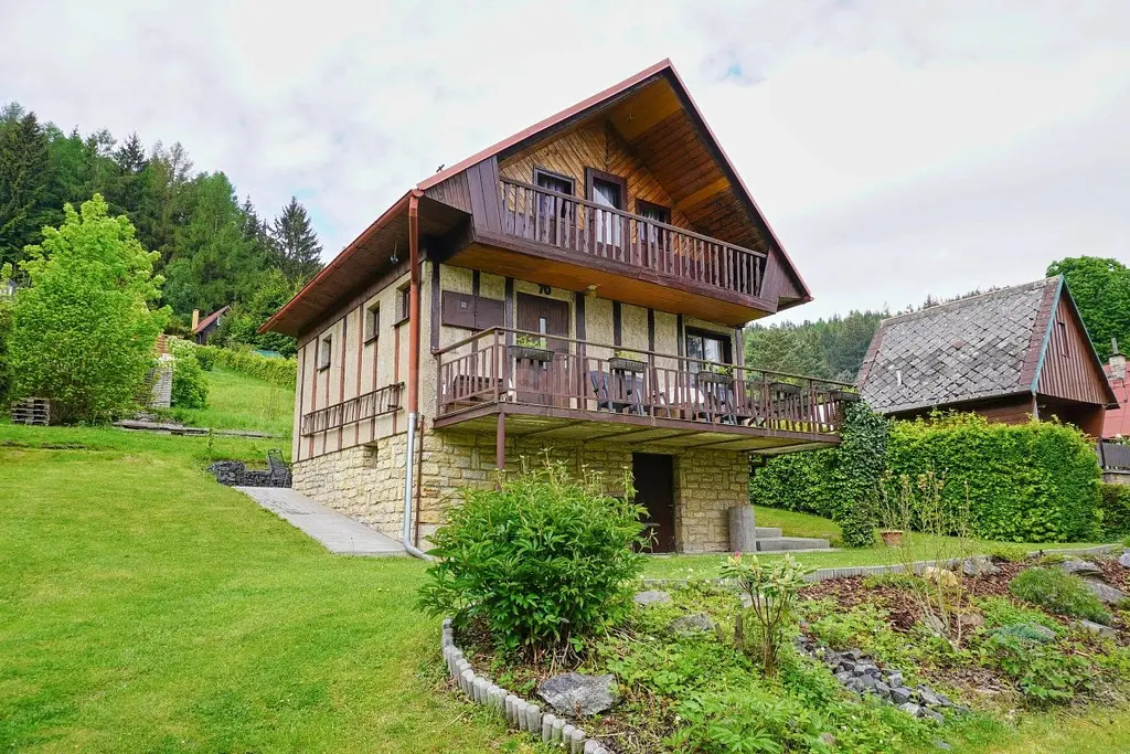 Celá chata je podsklepená a napojena na elektřinu, vodu a septik.