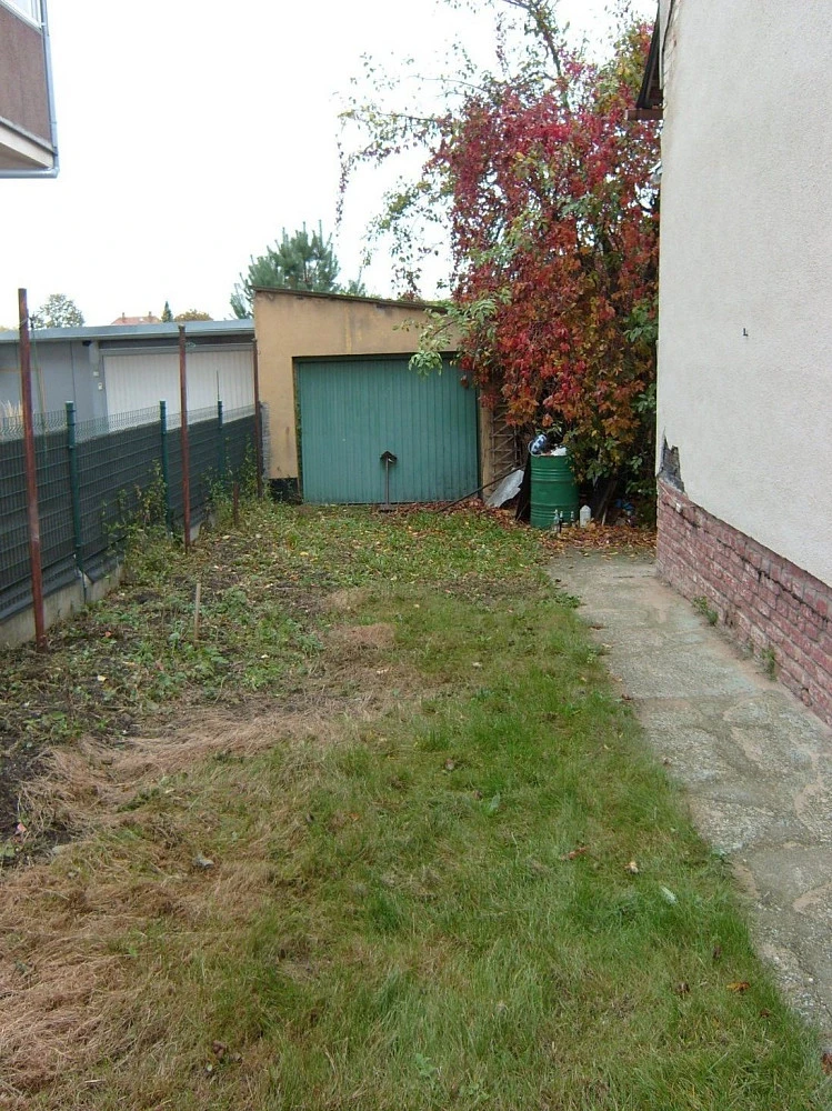 Součástí prodeje je zahrada, kde se nachází garáž a přístavky sloužící jako dílna a prostor k uložení zahradního nářadí. Celková plocha pozemku je 345 m².