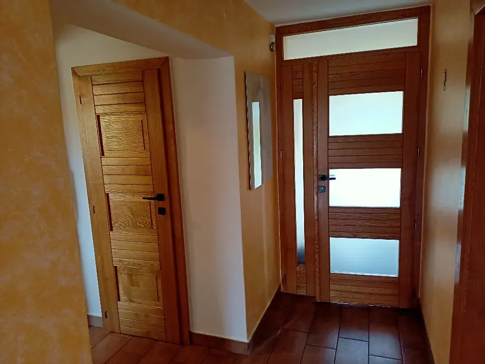Celý dům je zařízen kvalitním nábytkem z masivu vyrobeným na míru, který dodává prostorám jedinečný styl a vůni dřeva.