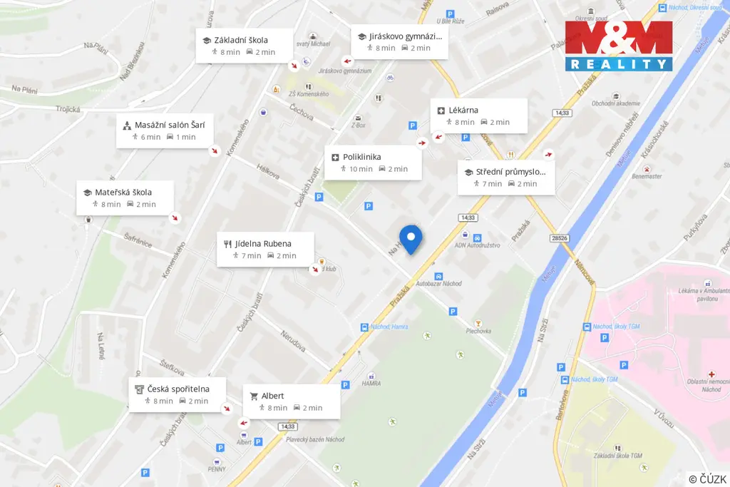Velkou předností této nemovitosti je její centrální poloha. V bezprostředním okolí naleznete kompletní občanskou vybavenost – obchody, školy, školky, zdravotnická zařízení i zastávky MHD. Veškeré služby potřebné pro každodenní život tak máte v docházkové vzdálenosti.
