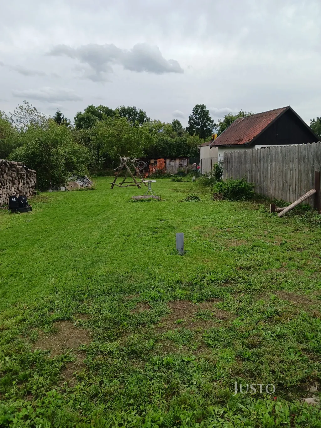 Na pozemku se nachází menší zahradní domek, který je předmětem samostatného řešení se sousedními vlastníky.