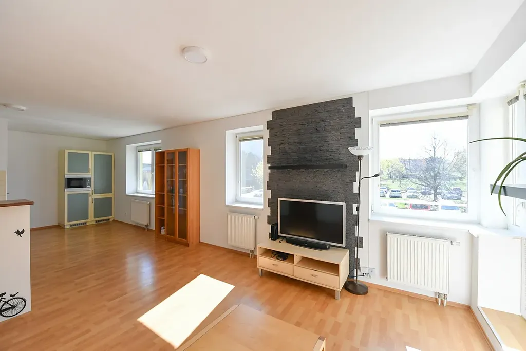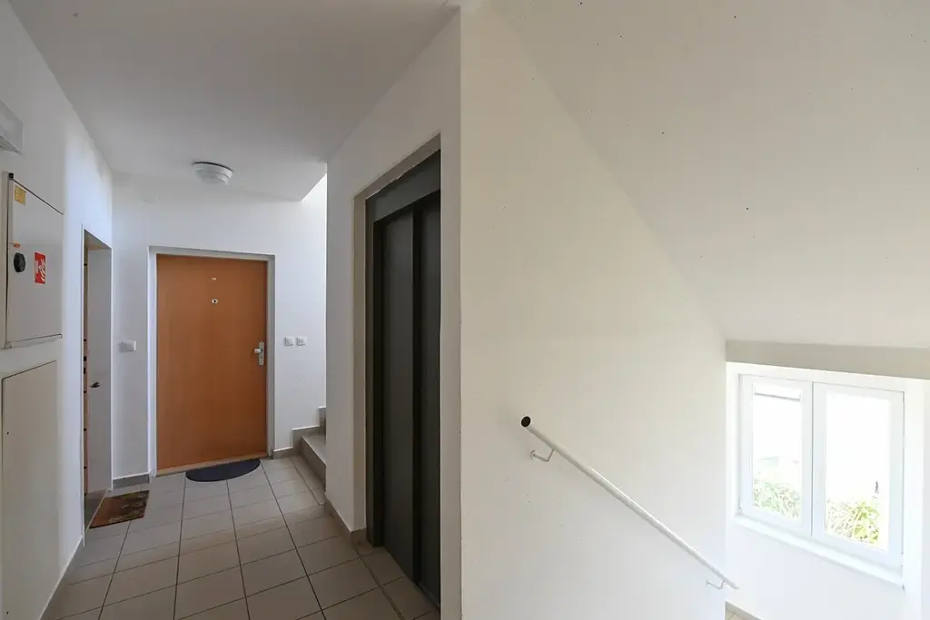 K bytu náleží nadstandardně velký zděný sklep (6 m²). Možnost dokoupení garážového stání v zabezpečeném parkovacím domě za 500 000 Kč.