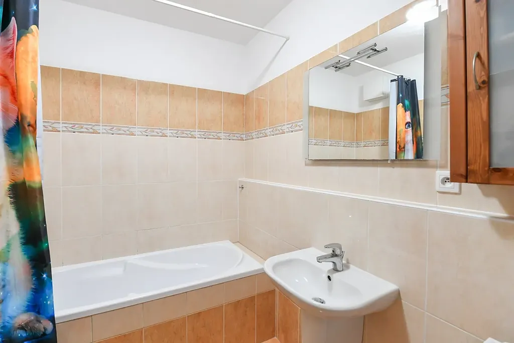 Byt je orientovaný na jih, východ a západ, je čerstvě vymalovaný a připravený k okamžitému nastěhování. Kuchyň je vybavena vestavnými spotřebiči (lednice, mrazák, trouba, mikrovlnná trouba, myčka, varná deska). V bytě jsou plovoucí podlahy, dlažba v předsíni, koupelně a WC, bezpečnostní dveře, žaluzie a sítě proti hmyzu. Koupelna s vanou umožňuje umístění pračky i sušičky, WC je samostatné.