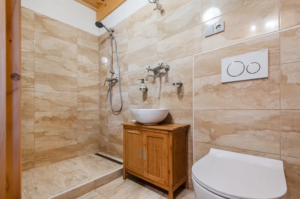 Vytápění je řešeno elektrickým podlahovým topením a krbem, který dokáže místnosti také vytopit. Podlahové topení zle ovládat také pomoci mobilního telefonu na dálku. O ohřev vody se stará elektrický boler, také na dálkově ovladatelný. Můžete si tak zvolit teplotu domu nebo chalupy v době vašeho příjezdu.
