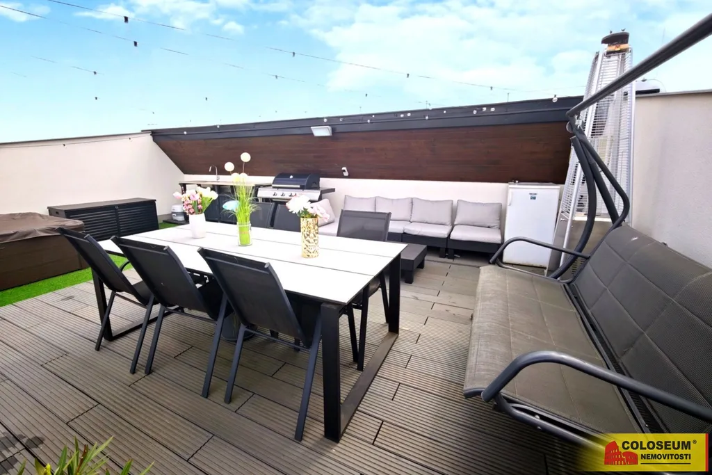 Součástí nemovitosti je terasa ideální pro relaxaci či posezení s rodinou a přáteli, dále sklep poskytující praktické úložné prostory. Parkování je zajištěno přímo u domu se dvěma parkovacími místy.