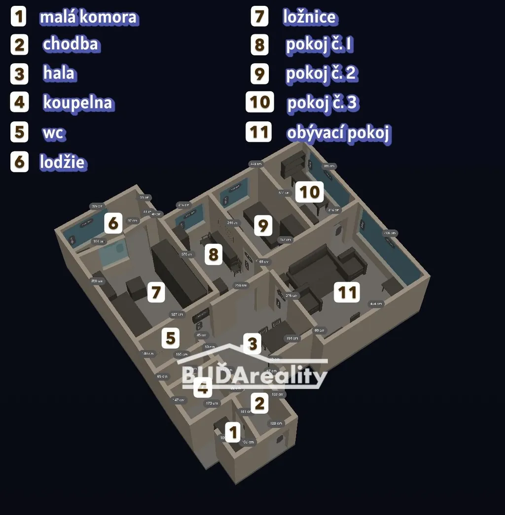 Díky svému rozložení místností v jednotce je vhodná tato nabídka i pro rodiny s dětmi. U vstupu se nachází samostatná komora s osvětlením. Prostorná hala slouží jako jídelna nebo také po úpravách může být součástí obývacího pokoje. Dále tu jsou 3 místnosti určené ke spaní a kuchyň. V ložnici se vstupuje do lodžie.