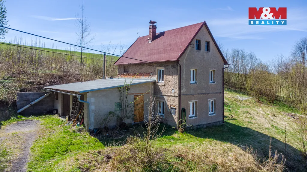 Postaven byl v 50. letech, střecha renovována cca před ~ 20 lety, plastová okna z roku 2023. Okolo domu je z části rovinatá a z části svažitá zahrada. U domu je prostorná dvojgaráž na parkování nebo k jinému využití.