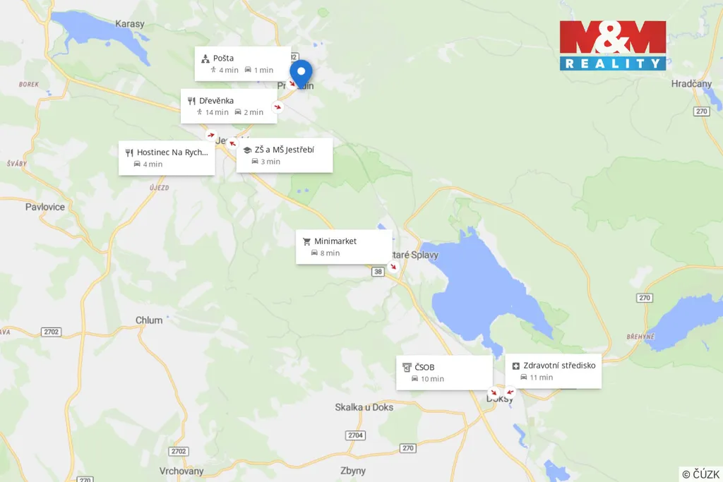 V okolí domu je dostatek zeleně a v obci se nachází obchod, restaurace, školka, vlakové a autobusové spojení do města Česká Lípa a okolních obcí.