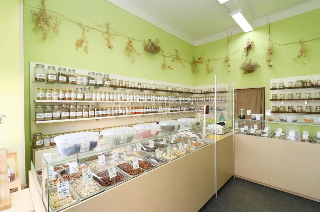 Prostor disponuje velkou výlohou orientovanou do ulice a je plně vybaven zařízením, které je možné odkoupit. V zadní části se nachází zázemí společně s toaletou.