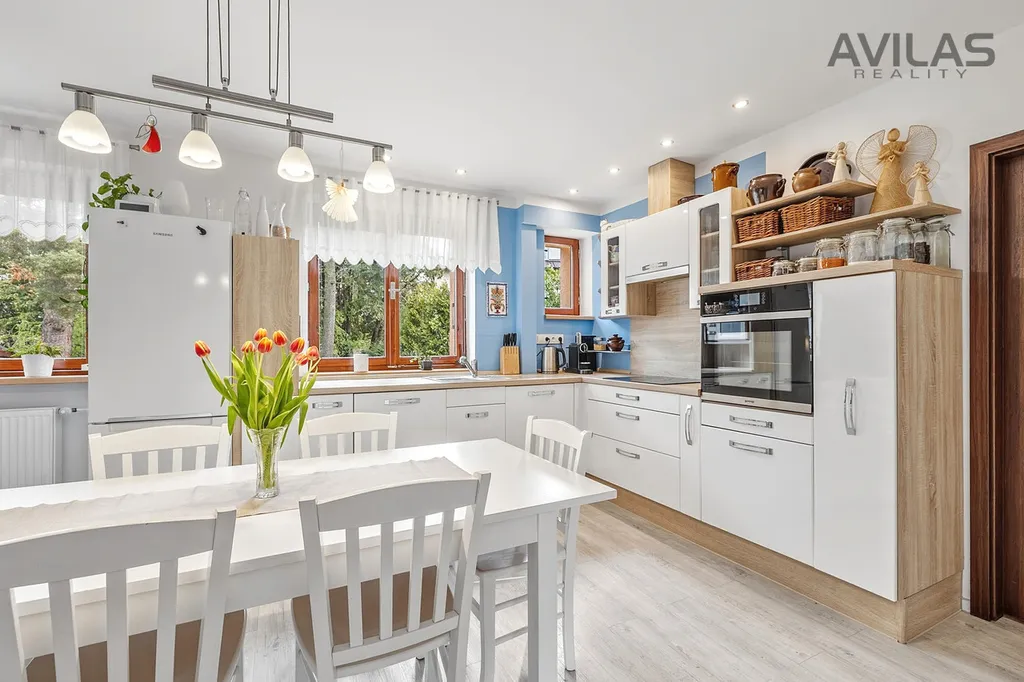 Nabízíme k prodeji rodinný dům 6+2 s celkovou podlahovou plochou 267 m2 a garáží v klidné části Hloubětína, ulice Poříčanská. Dům z roku 1970 je postaven v původní vilové zástavbě a v roce 2000 prošel rekonstrukcí (změna na vícegenerační bydlení včetně podkroví), další rekonstrukce proběhla v roce 2015 v 1.NP domu (úprava dispozice pokojů, výměna topných těles, rekonstrukce koupelny + WC, kuchyně) a v roce 2023 rekonstrukce 2.NP (chodba, koupelna s WC a kuchyně). Dům svou velikostí nabízí ideální zázemí pro rodinné bydlení. Dispozice jednotlivých podlaží a umístění schodiště zároveň umožňují, po menších úpravách, rozdělení na až tři samostatné bytové jednotky – vhodné jak pro vícegenerační bydlení, tak i k pronájmu. Prostorná zahrada poskytuje dostatek místa pro výstavbu menšího objektu k podnikání (např. kadeřnictví, ordinace či kancelář) nebo vedlejšího bydlení (vejminek).
