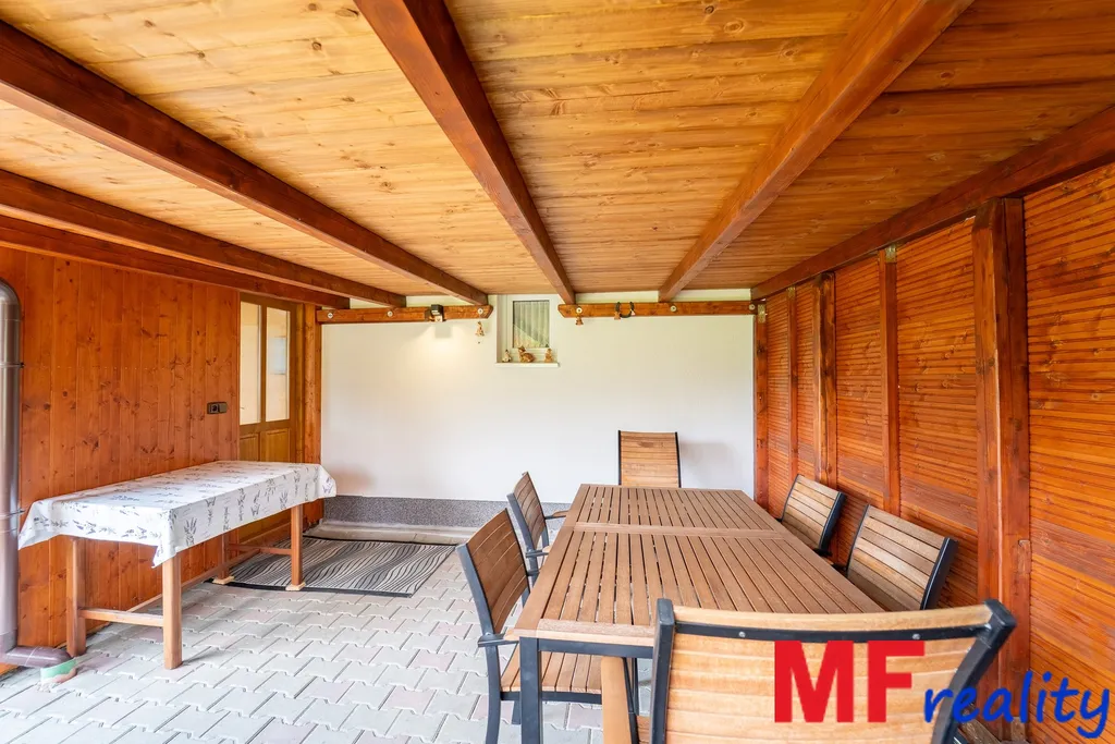 Tento objekt má zachovány částečné prvky původní stavby s verandou, následně provedenou rekonstrukcí přístavy započatou v letech 2018 s dokončením kryté venkovní pergoly roku 2025, pro maximální využití.