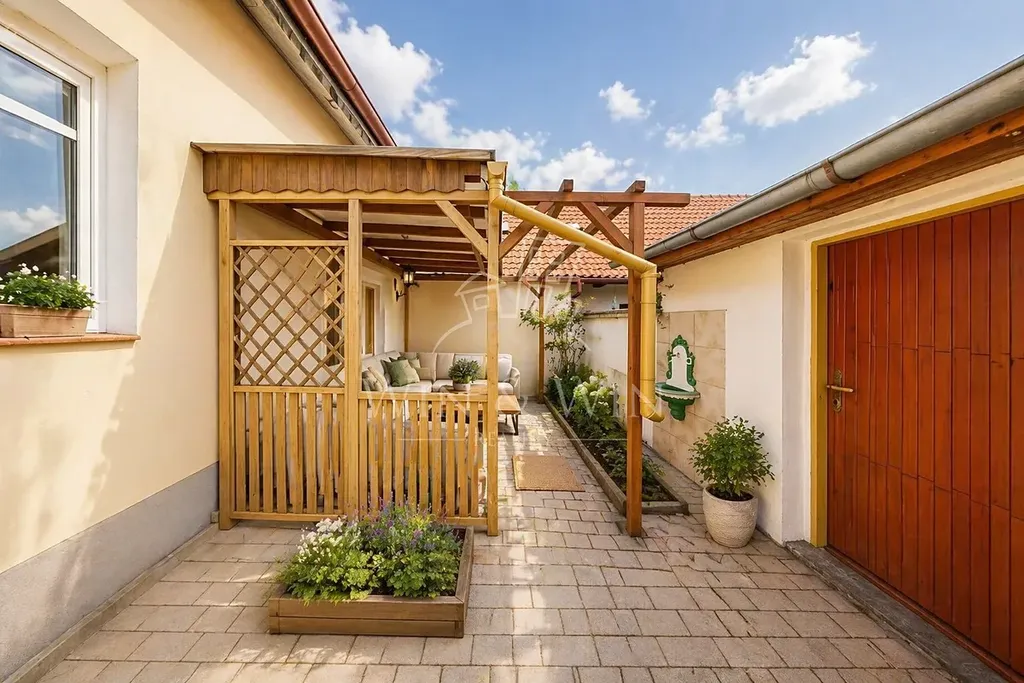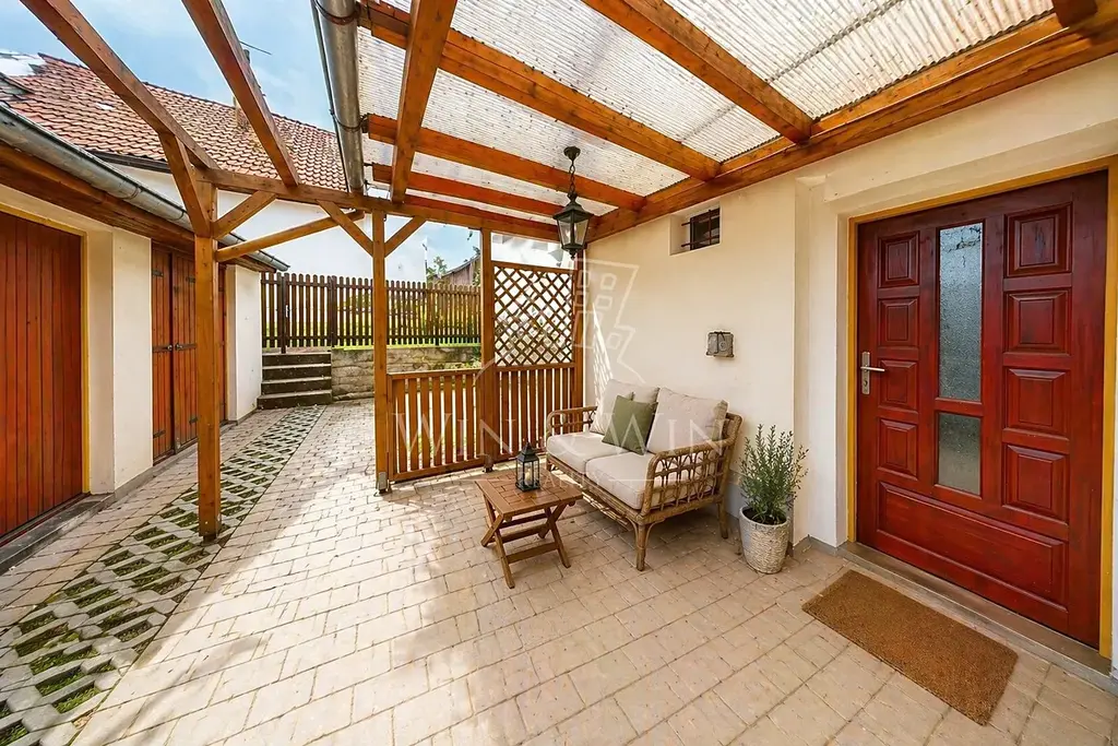 Velkou výhodou domu je prakticky řešený venkovní prostor. Před domem se nachází menší dvorek vhodný pro každodenní využití. Za domem je pak druhý, klidnější dvorek, který poskytuje více soukromí a je ideální pro relaxaci, posezení s rodinou nebo grilování. Díky menším venkovním plochám odpadá náročná údržba zahrady a zůstává více času na rodinu, odpočinek nebo sportovní aktivity v okolní přírodě. Dvorky jsou sice malinké, ale i tak zde najdete prostor například pro vyvýšené záhonky s bylinkami či rajčaty.