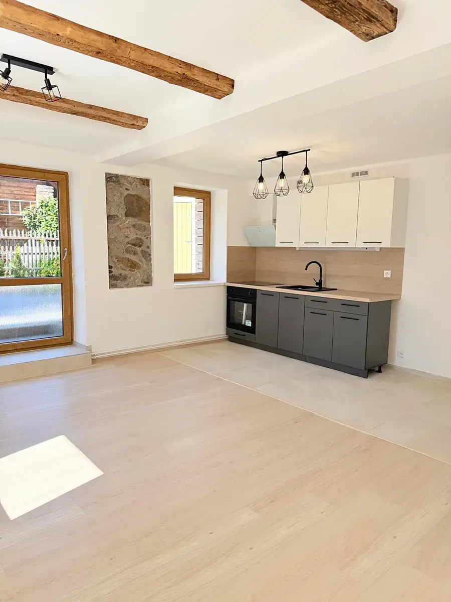 Celý dům nyní prošel velmi vkusnou kompletní rekonstrukcí. V interiéru byly zhotoveny nové podlahy, omítky, kuch. linka, koupelna, schodiště, zateplení podkroví (22 cm), dveře s obložkovými zárubněmi. Je zde kompletně nový otopný systém včetně nového el. kotle (19 Kw), bojler (100l MORA), nová topná tělesa. Případně je v domě komín s vložkou, připravený na připojení kamen.