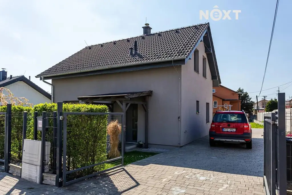 Zahrada má celkem 748 m² a dále na ní najdete menší boudu na nářadí, dětské hřiště, nějaké ty věcičky na workout a také další zpevněnou plochu z boku domu, kde můžete zaparkovat spoustu aut.