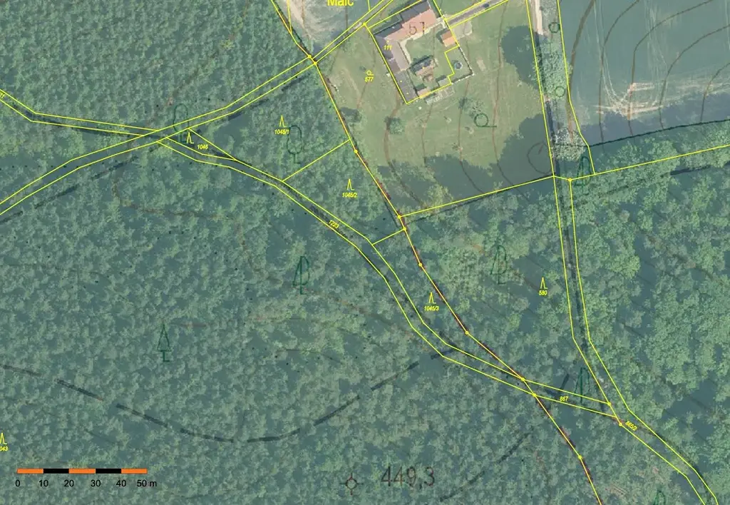 Lesní pozemek p.č. 1045/3 je nepravidelného, úzkého tvaru, nachází se při okraji lesního komplexu.