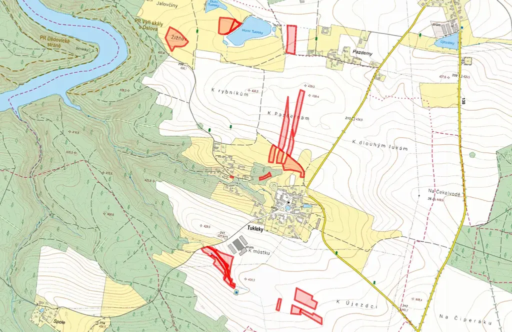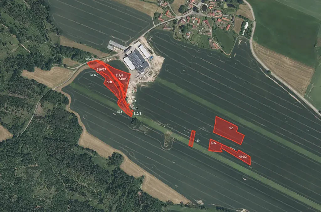 -> parc. č. 82, 97/1, 100/1, 102, 144/2, 153/1, 162, 193, 196, 199, 200, 460/2, 464, 466, 489, 510/8, 510/9, 510/10, 510/27, 510/41, 510/42, 510/43, 510/44, 514/2, 514/6, 514/7, 514/8, 514/9, 514/10, 514/11, 528, 530/1, 530/2, 530/3, 532, 670/23 a 705/1 (LV 423)