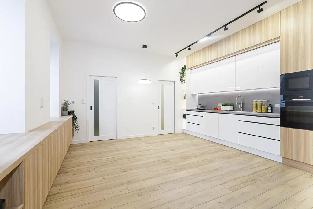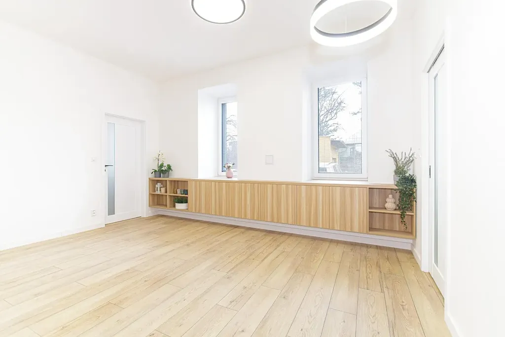 - Anhydritové podlahy s podlahovým vytápěním a kvalitní vinylovou nášlapnou vrstvou