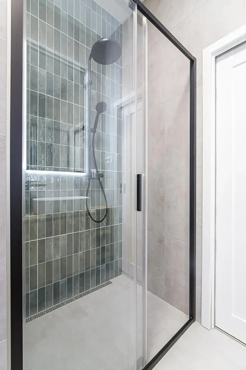 - Designová koupelna s walk-in sprchovým koutem