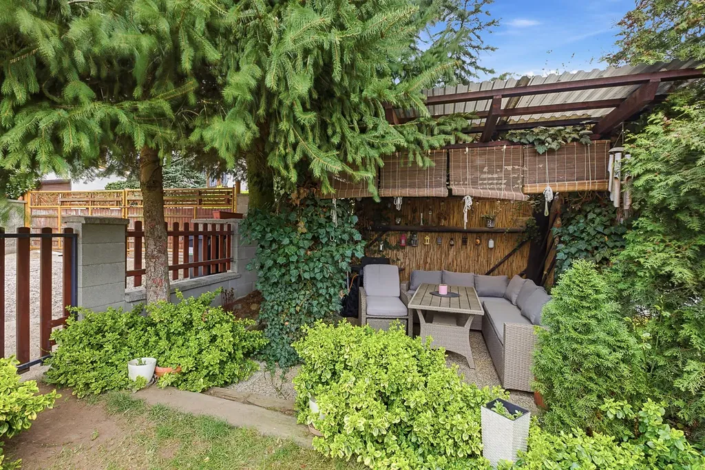 K domu náleží pozemek o rozloze 360 m², který je navržen pro radost, nikoliv pro dřinu. Najdete zde vzrostlou zeleň, která zajišťuje příjemné soukromí a klid od okolí. Pergolu, ideální pro venkovní posezení a odpočinek.