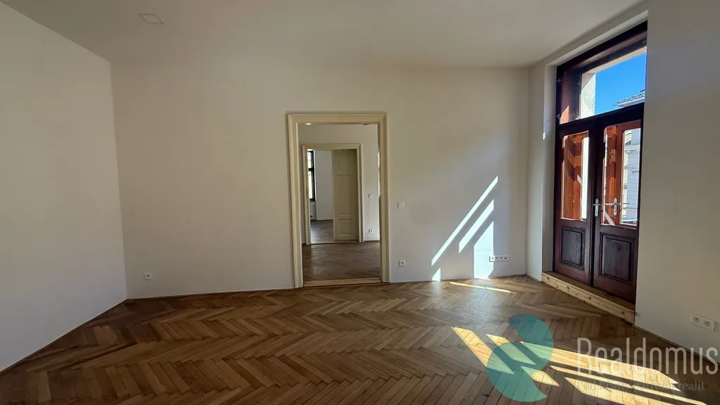 Nabízíme k pronájmu moderní a prostorný byt s balkónem o dispozici 3+1 (120 m²), který je umístěný v 2. patře. Byt je po kompletní rekonstrukci. Nová kuchyňská linka se spotřebiči (trouba, indukce, digestoř, mikrovlnná trouba, myčka), nová koupelna s vanou, sprchovou zástěnou, samostatná toaleta a šatna.
