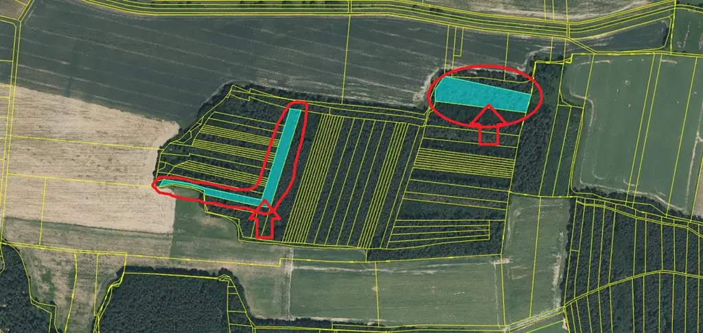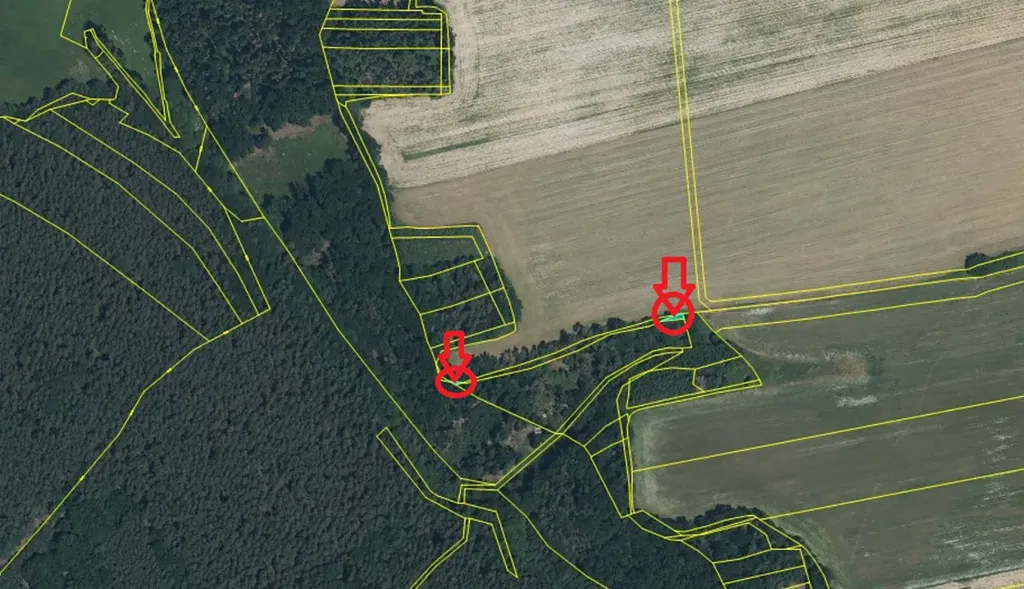 Pozemky jsou aktuálně bez těžby (vhodné k těžbě) - zaměřeny geodetickými body.