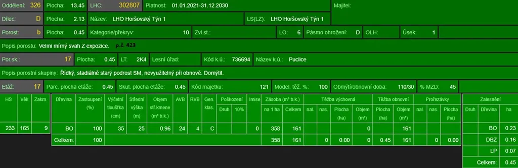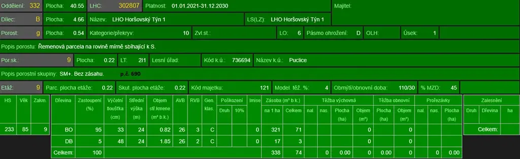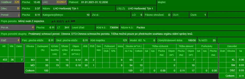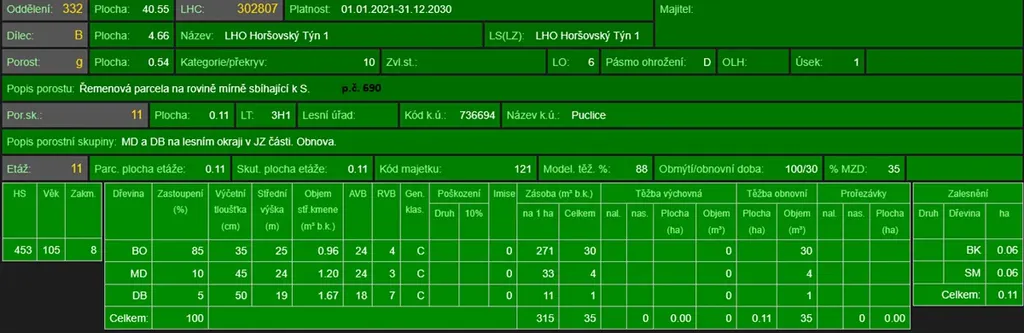 - p.č. 690 vedená jako lesní pozemek o celkové výměře 5 444 m2, z toho vlastníme podíl 2/3 tedy 3 659 m2 (stáří lesa 110 let - zastoupení dřevin borovice, modřín, dub, stáří lesa 90 let - zastoupení dřevin borovice, dub, stáří lesa 60 let - zastoupení dřevin borovice),
