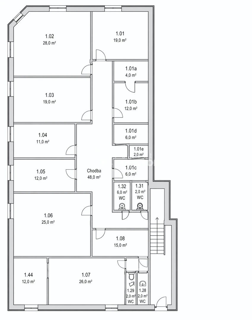 Objekt nabízí dostatek sociálního zázemí včetně kuchyňky, což zajišťuje komfortní provoz pro zaměstnance i návštěvy.