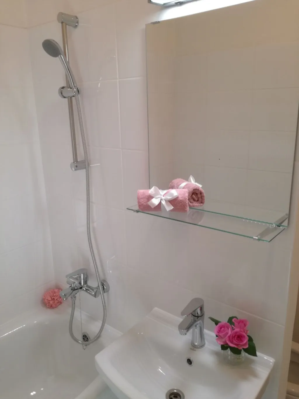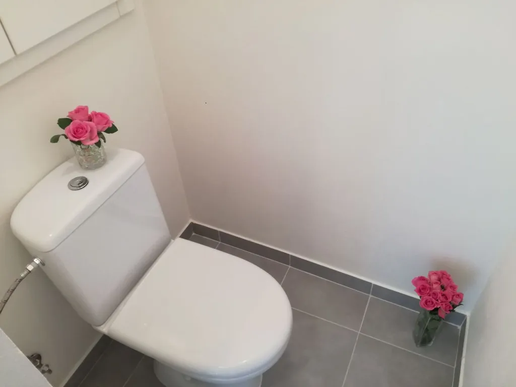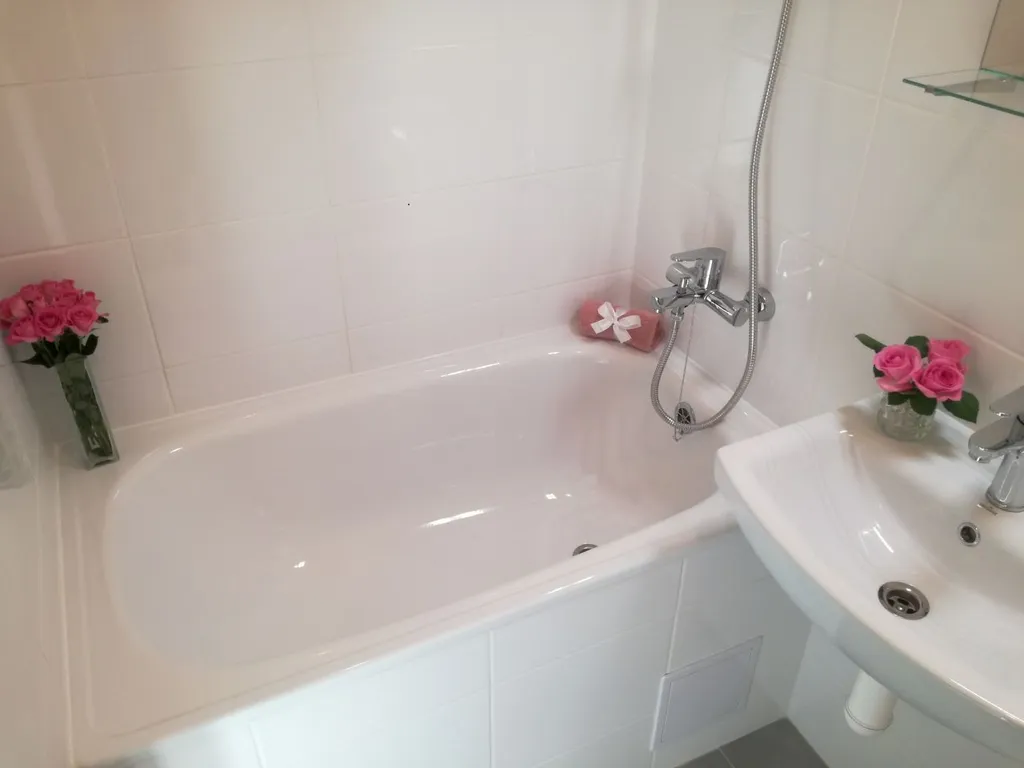 Má vyzděné jádro, podlahy (PVC), rozvody, omítky, interiérové dveře. Koupelna s vanou a umyvadlem, toaleta je součástí koupelny oddělena přepážkou.
