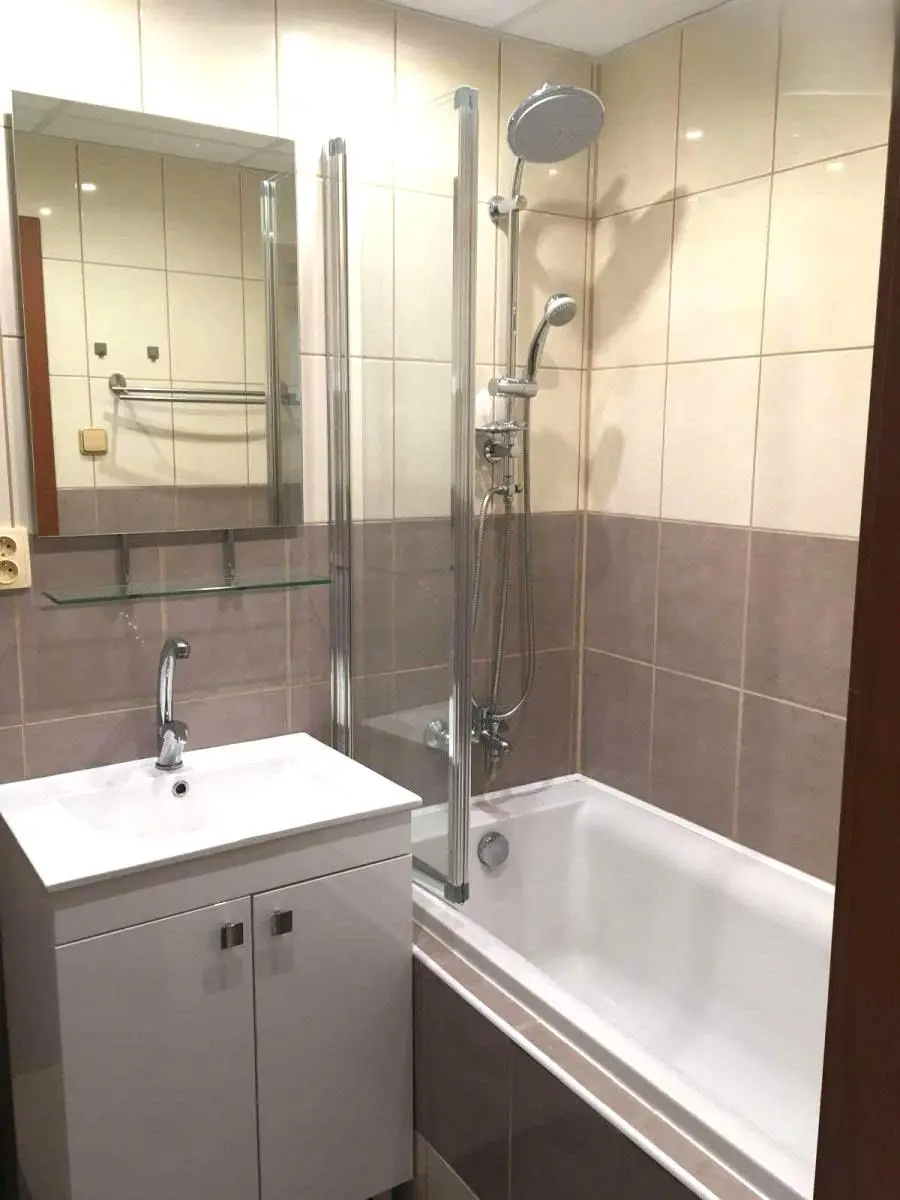 V kuchyni je kuchyňská linka s elektrickým sporákem a volně stojící lednice. Koupelna je obložena moderními obklady, je zde vana se sprchovou zástěnou a umyvadlová skříňka se zrcadlem, WC odděleno. K bytu náleží sklep.