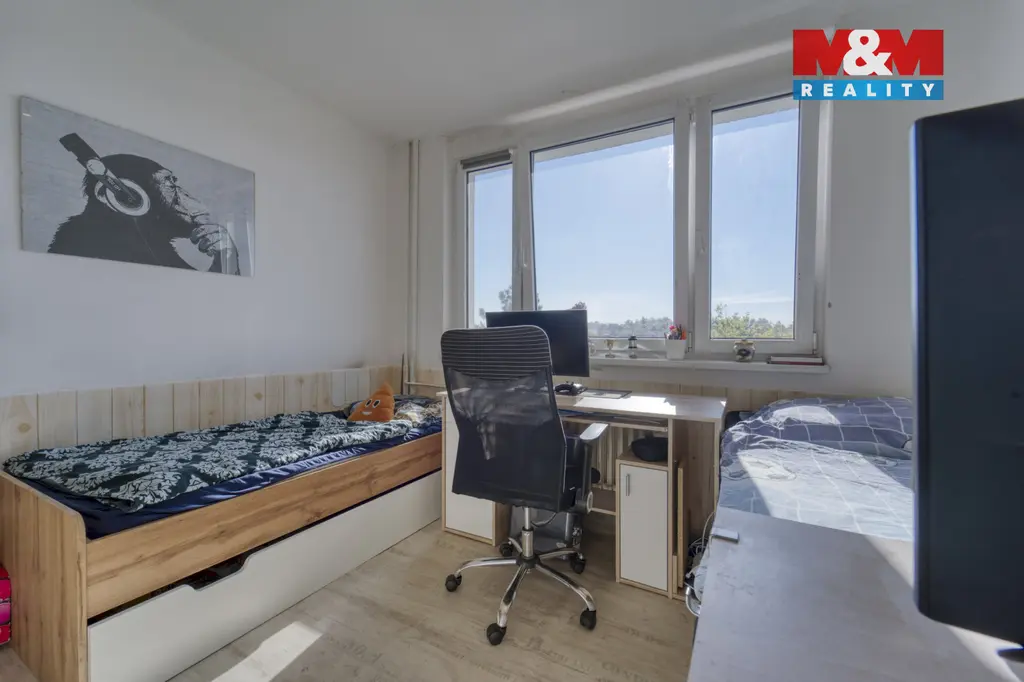 Prodej velmi prostorného bytu 4+1 o ploše 79 m² v klidné části Severní Předměstí, Plzeň. Byt se nachází ve 4.NP revitalizovaného panelového domu s výtahem (13 pater a suterén, kde se nachází sklepy). Nabízí praktické dispoziční řešení, najdeme zde vstupní chodbu, 3 samostatné neprůchozí pokoje, obývací pokoj se vstupem na lodžii, prostornou kuchyň, koupelnu a WC, což je vhodné pro rodinu i home office. Navíc k bytu náleží vlastní zděný sklep s dveřmi. Vytápění i ohřev vody zajištěn dálkově. Výhodou jsou světlé pokoje a příjemné prostředí. Výborná příležitost pro komfortní bydlení. Veřejná parkoviště jsou u domu. Lokalita je perfektní - hned naproti najdeme prodejnu Albert, ZŠ a MŠ jsou také prakticky u domu, zkrátka veškerá občanská vybavenost je v těsné blízkosti. Pro více informací a prohlídku kontaktujte realitního makléře.