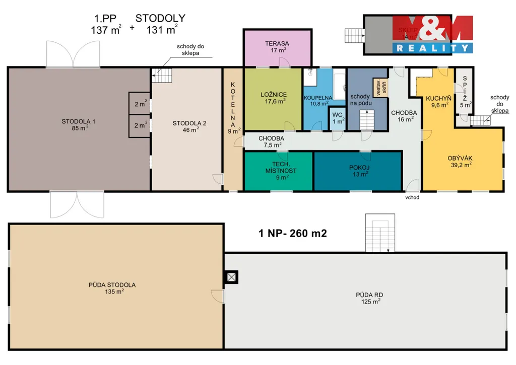 • Stodola (131 m²) – perfektní pro podnikání, dílnu, sklad nebo stylovou přestavbu