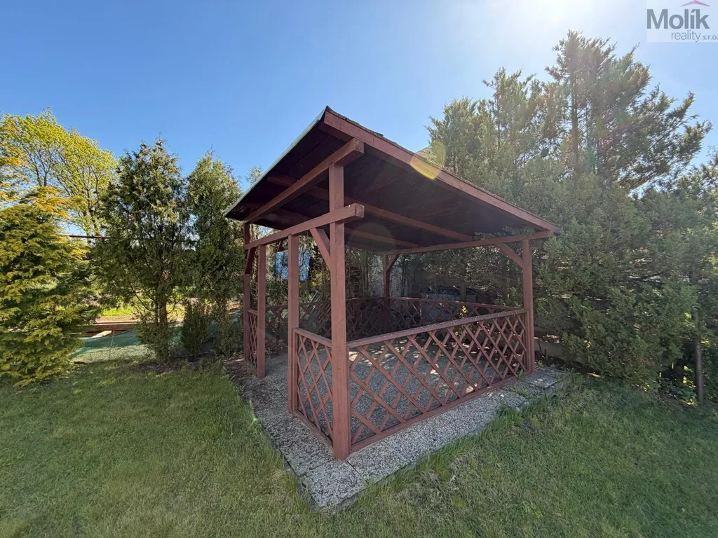 Zahrada u domu poskytuje soukromí a její hlavní předností je bazén a také dřevěný altánek, který poskytuje příjemné místo pro venkovní posezení.