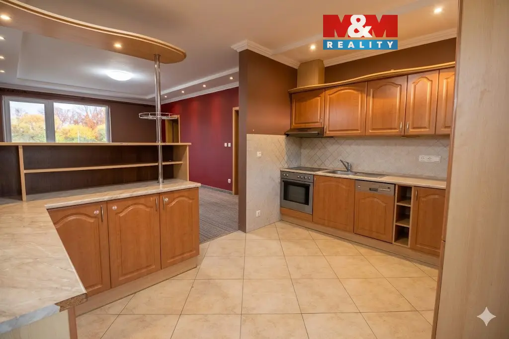 Stylová kuchyň je vybavena moderními spotřebiči – elektrickou troubou, sporákem s digestoří, myčkou na nádobí a velkou lednicí, skvělý barový ostrůvek propojuje kuchyň s obývacím prostorem. Nejútulnější místností je ložnice. Velkorysá koupelna nabízí dostatek prostoru i přípojku na pračku.