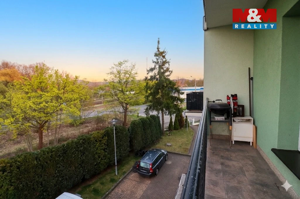 Součástí bytu je prostorný balkon s grilem. V oploceném areálu domu se nachází udržovaná travnatá plocha a parkoviště se dvěma parkovacími stáními, která náleží přímo k bytu.