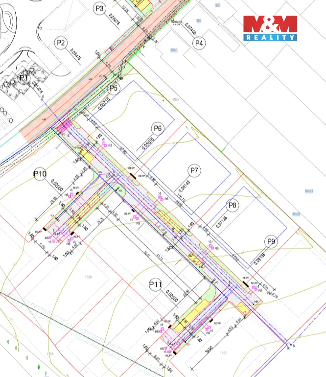 Pozemky aktuálně nejsou zasíťované a vyžadují vybudování vnitřní obslužné komunikace.