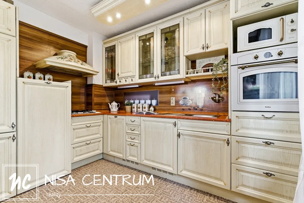 V hlavní obytné části se nachází vstupní chodba a světlý obývací pokoj s krbem, který je funkčně propojen s kuchyní. Soukromou zónu tvoří tři ložnice, z nichž jedna disponuje vstupem na balkon, a koupelna vybavená vanou. Velkou výhodou je, že toaleta je umístěna zcela samostatně v oddělené místnosti, což zajišťuje vyšší komfort i soukromí.
