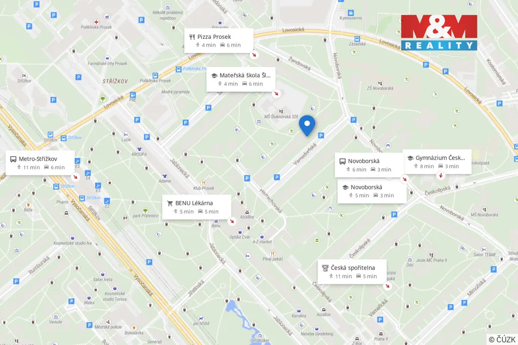 K pronájmu nabízíme útulný byt 1+1 o výměře 26 m², s velmi prostornou lodžií (7m²) a s komorou, která je na patře. Byt se nachází v 1.patře a v domě se nachází výtah. Klidná lokalita Střížkov, je ideální prostředí pro bydlení, jak pro jednotlivce, nebo pár, pro které je byt připraven ihned k nastěhování. V dosahu je veškerá občanská vybavenost jako je OC Letňany, metro Střížkov pár minut cesty, základní škola, mateřská škola, dětské hřiště, restaurace. Parkování je možné na parkovišti přímo u domu.