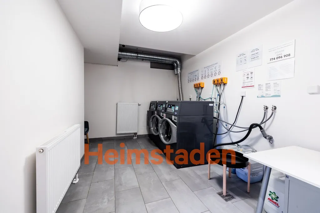 K dispozici je možnost pronájmu garážového stání přímo v domě. V přízemí se nachází společná prádelna s pračkou a sušičkou za poplatek, což přináší další komfort pro každodenní život.
