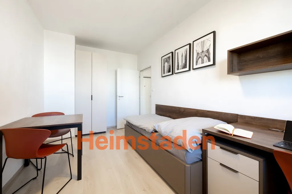 Dispozici tvoří dva samostatné, neprůchozí pokoje. Větší pokoj je vybaven dvěma jednolůžkovými postelemi, menší pokoj jednou jednolůžkovou postelí, což umožňuje komfortní bydlení až pro tři osoby. Samostatná kuchyně je plně zařízená a připravená k okamžitému užívání. Byt se pronajímá kompletně vybavený, takže nabízí možnost rychlého nastěhování bez nutnosti dalších investic.