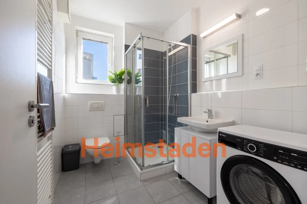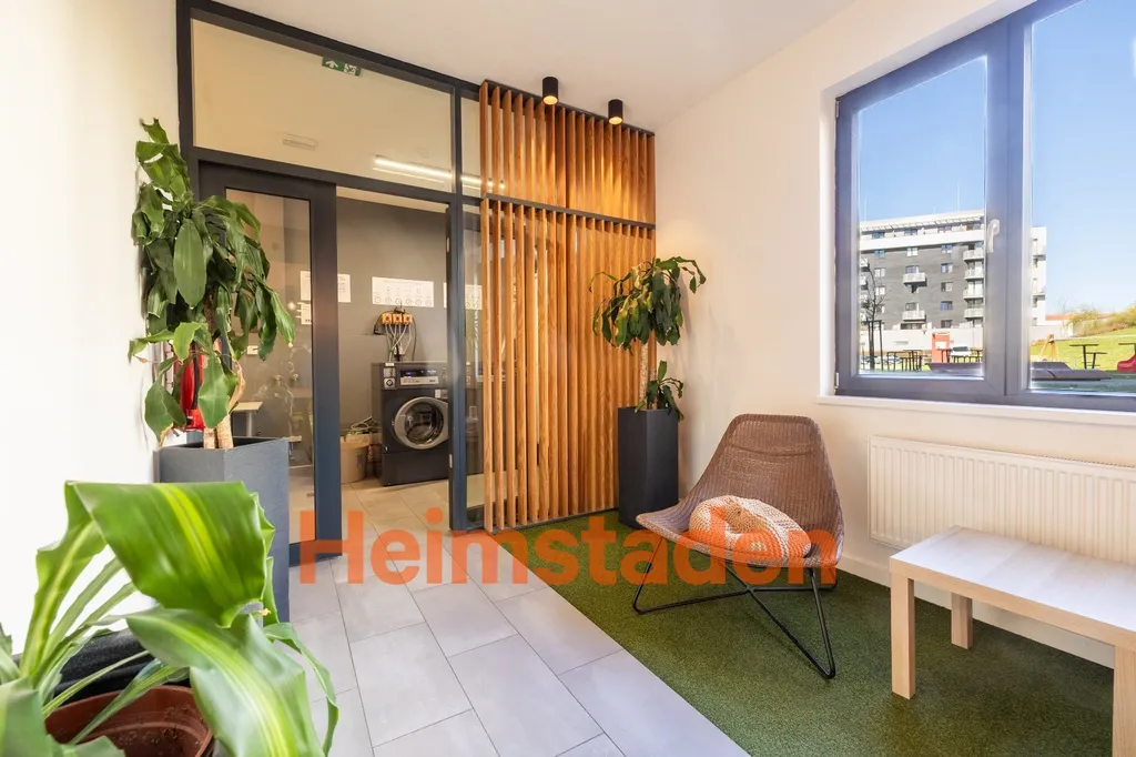 Koupelna disponuje vlastní pračkou. V přízemí domu je zároveň k dispozici společná prádelna s další pračkou a sušičkou za poplatek. Dům je vybaven výtahem a je zde možnost pronájmu garážového stání.