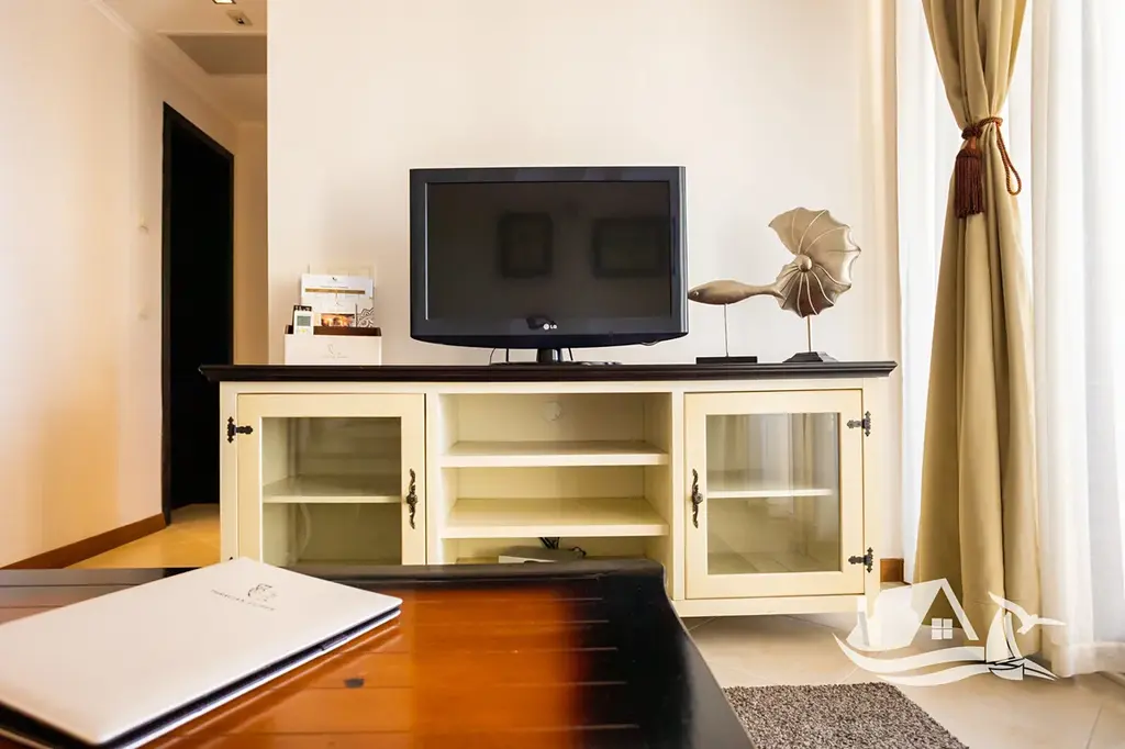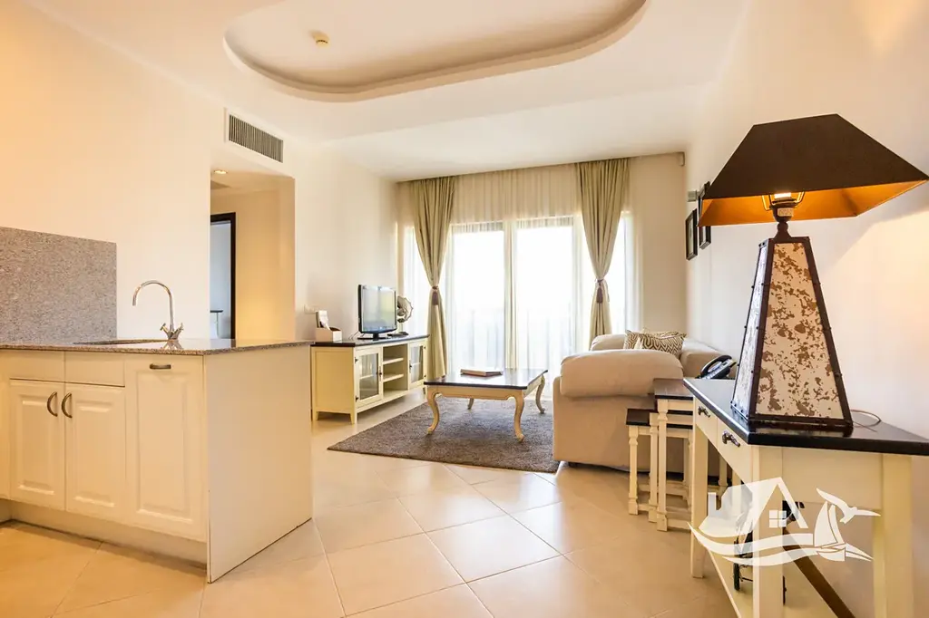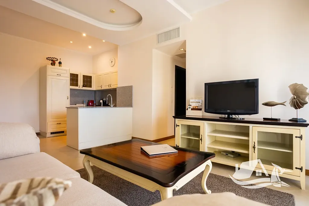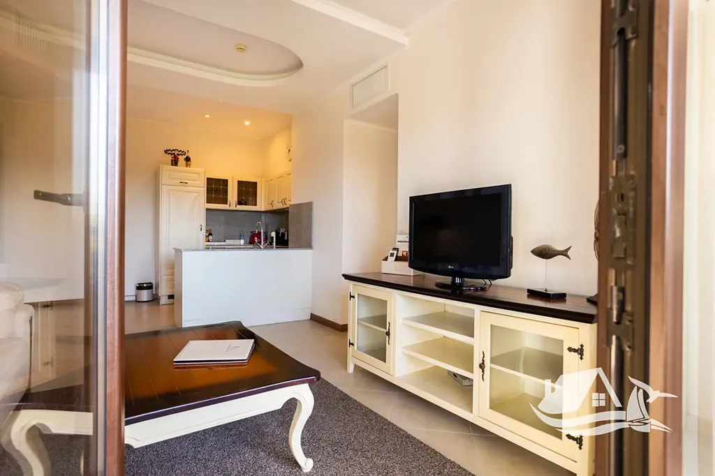 Nabízený dvoupokojový apartmán se nachází v 1. patře budovy Marina Village, blok 1, v části resortu, která je dlouhodobě velmi žádaná pro krátkodobý i hotelový pronájem. Dispozice je praktická a osvědčená pro vlastní užívání i investici. Obývací pokoj je doplněn samostatnou toaletou pro hosty, ložnice má vlastní koupelnu s toaletou a z terasy se otevírá příjemný výhled do areálu resortu. Přímý výhled na moře není, což se pozitivně odráží v ceně, zároveň však apartmán nabízí klidnější polohu a snadnou dostupnost všech služeb.