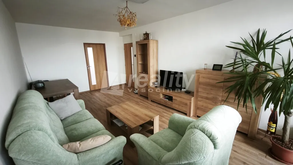 Dispozice: z předsíně (4,9 m2) je po pravé straně samostatný vstup na WC (0,8 m2), dále do koupelny se sprchovým koutem (2,1 m2), do kuchyně s novou kuchyňskou linkou včetně vestavěné mikrovlnné trouby, sklokeramické varné desky a elektrické trouby, pračky (8 m2), dále do prostorného obývacího pokoje propojeného s jídelní částí (22,4 m2) se vstupem na lodžii (4,5 m2) s orientací na západ, obývací pokoj je průchozí do ložnice (12 m2) s orientací na východ. V bytovém domě je možnost využití kolárny a úklid společných prostor je zajištěný přes firmu - v ceně záloh na energie.