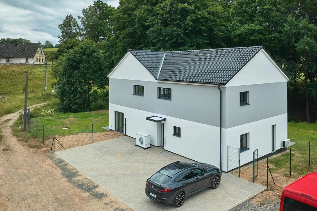 Díky kvalitnímu zateplení a trojsklům dosahuje dům energetické třídy PENB B - velmi úsporná.