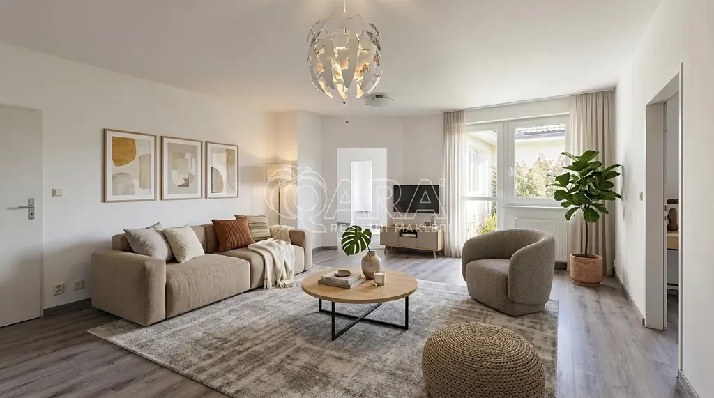 Fotografie odpovídají aktuálnímu stavu bytu, součástí prezentace jsou i vizualizace pro lepší představu budoucího zařízení.
