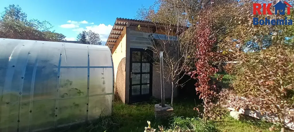 Zahrada o výměře 1 287 m² je rovinatá a prakticky rozdělena na dvě části. Přední část slouží k relaxaci nachází se zde bazén (7 × 3 × 1,5 m) s vlastním tepelným čerpadlem a zahradní domek. Zadní část je využita užitkově najdete zde záhony, skleník, ovocné stromy a kopanou studnu s užitkovou vodou.
