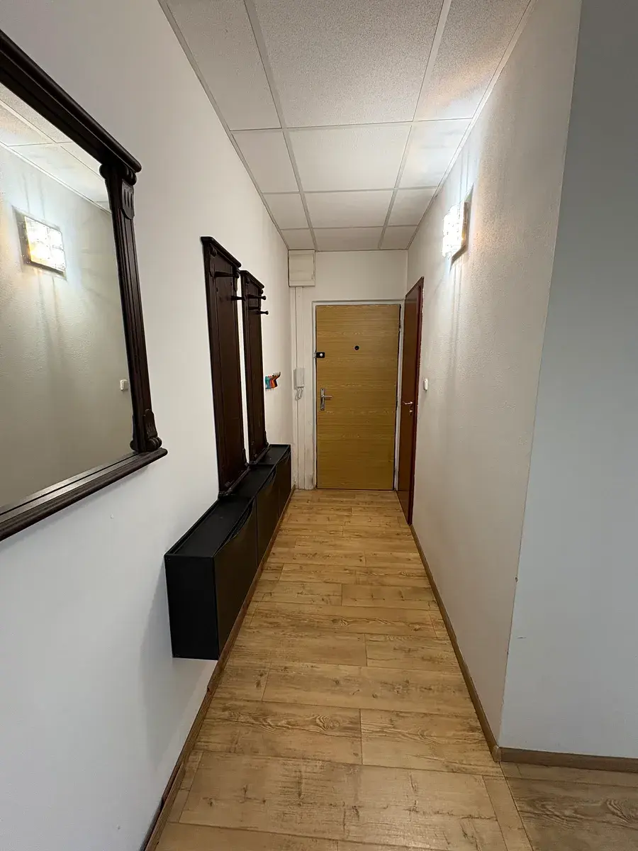 V bytě se nachází kuchyně s rohovou kuchyňskou linkou a spotřebiči, zděná koupelna s velkým sprchovým koutem a umyvadlem, WC je oddělené. V celém bytě je vinyl, v koupelně dlažba.
