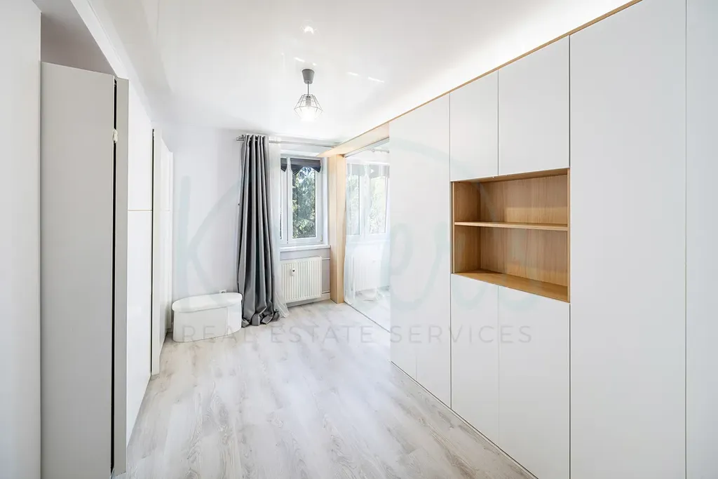 Byt prošel rekonstrukcí a nabízí praktické dispoziční řešení – všechny pokoje jsou neprůchozí. Koupelna je samostatná, oddělená od toalety. Hlavní ložnice je chytře rozdělena posuvnými dveřmi na spací a šatní část, což zajišťuje dostatek soukromí a komfortu. Druhý pokoj je aktuálně využíván jako dětský, snadno jej však lze upravit na obývací pokoj dle potřeb nového majitele.